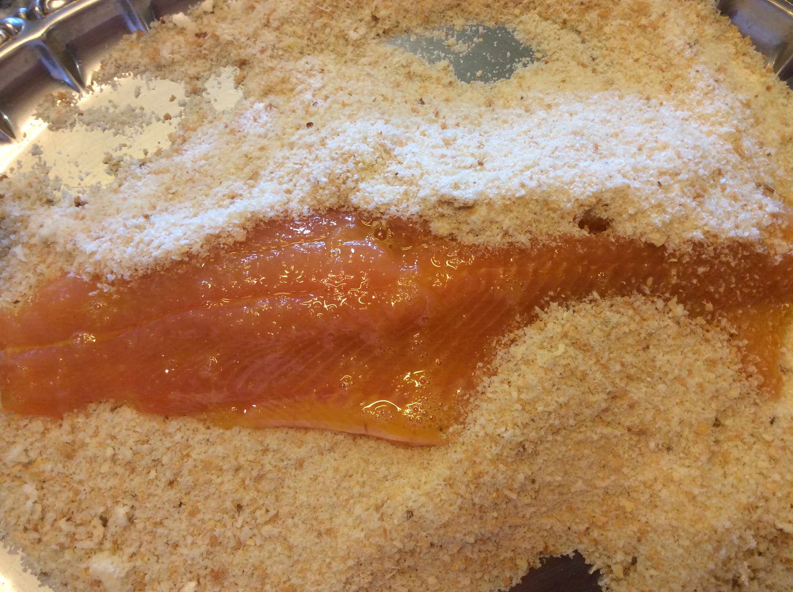 Se vi avanza uovo e vi piace potete, fare una doppia panatura ripassando il filetto ancora nell’uovo e poi nel pane grattugiato