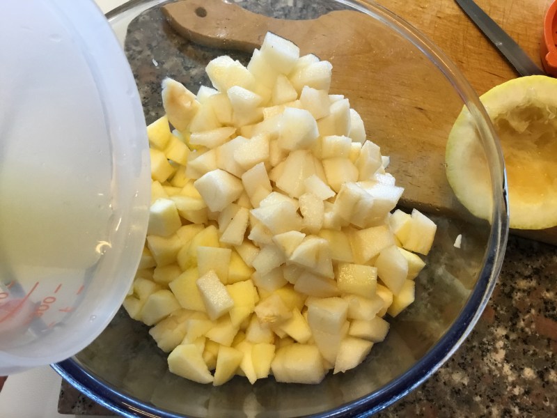 Le metto in una ciotola e verso sopra il succo del limone spremuto per non farle annerire