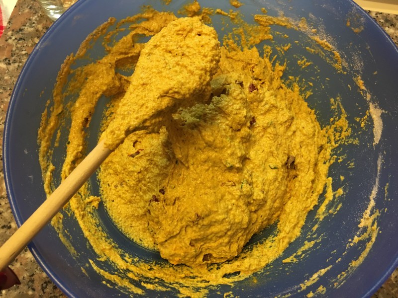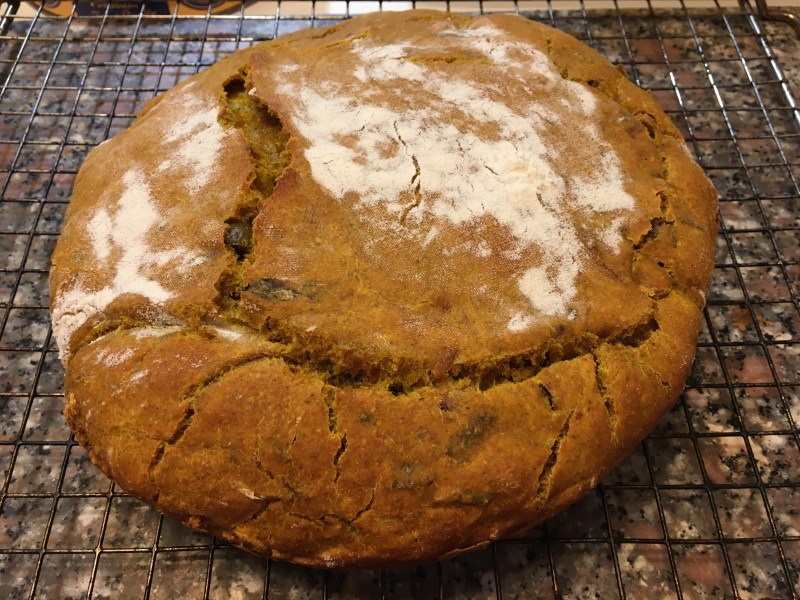 3 pensieri su “ PANE INTEGRALE ALLA CURCUMA CON OLIVE E POMODORINI SECCATI SENZA IMPASTO