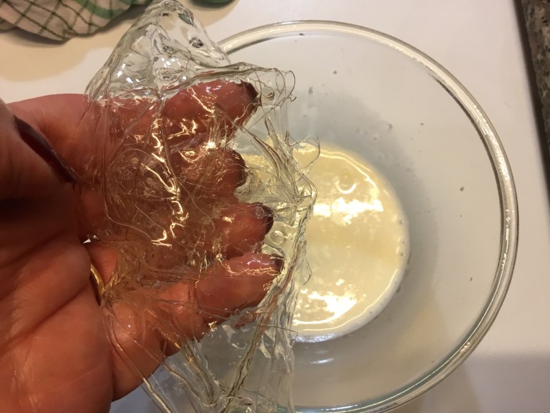 Intanto metto ad ammmollare per 10 minuti la gelatina in acqua molto fredda
