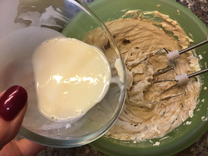 La stempero bene la lascio leggermente raffreddare, la aggiungo delicatamente alla crema a filo continuando a lavorare con le fruste per evitare i grumi