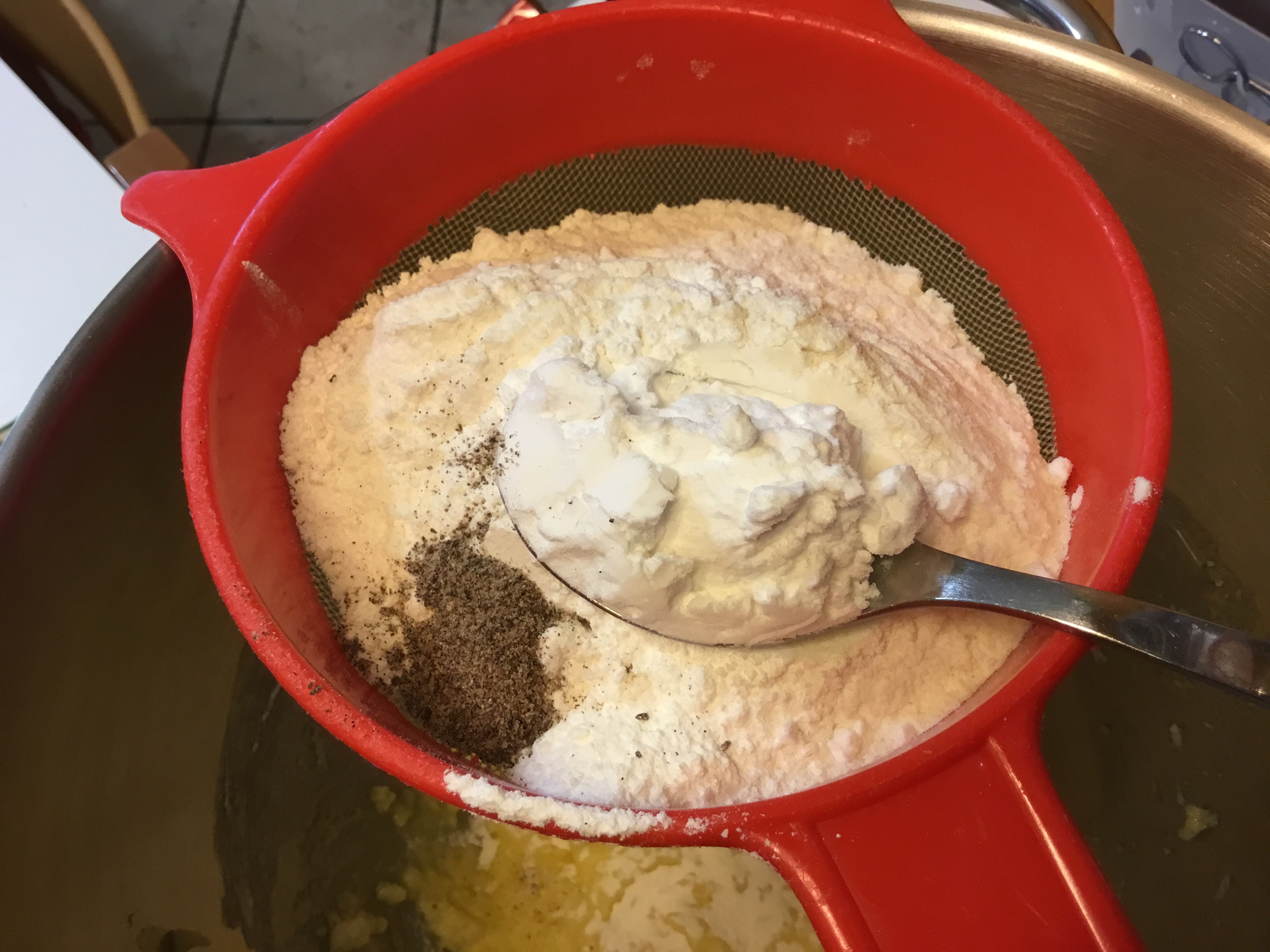 Setaccio farina, lievito, fecola e vaniglia e li aggiungo al composto continuoando a montare