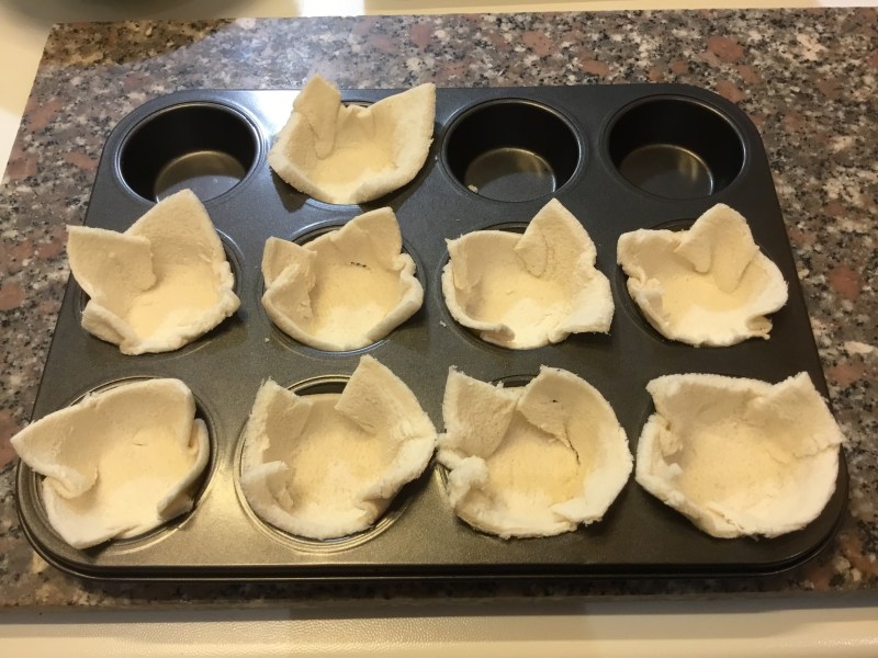 Con delicatezza inserisco ogni fettina nello stampo dei muffin