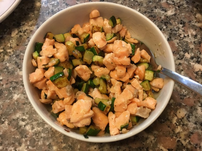 Cubetti di salmone (ottimi i cubetti di cotechino)
