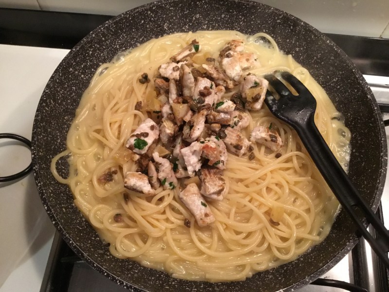 Cuocio molto velocemente quindi unisco i capperi tritati e un trito di prezzemolo