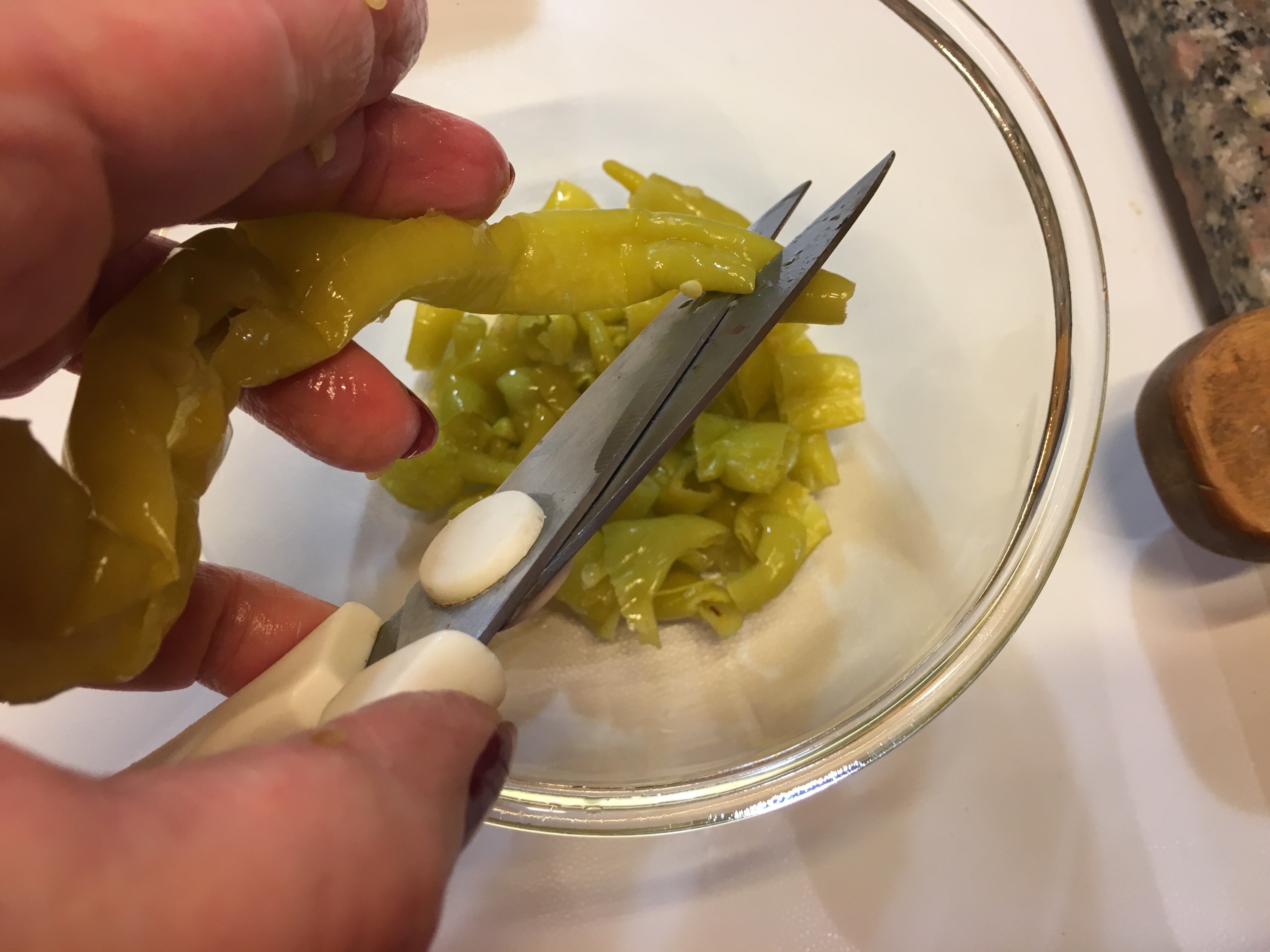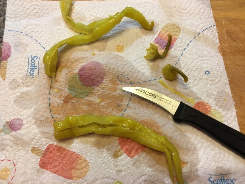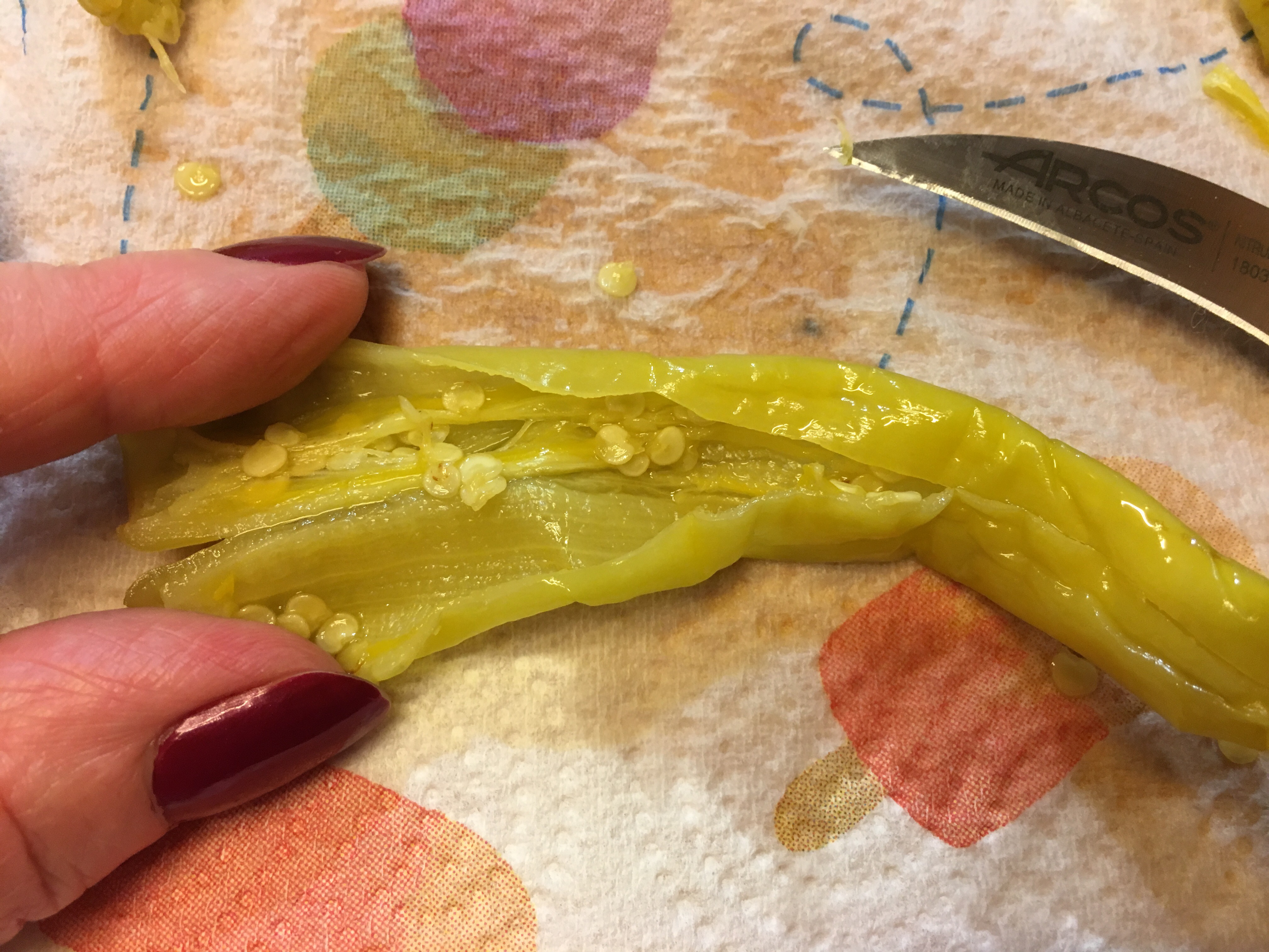 Con un coltellino affilato pratico un’ incisione su ogni peperone ed elimino il picciolo