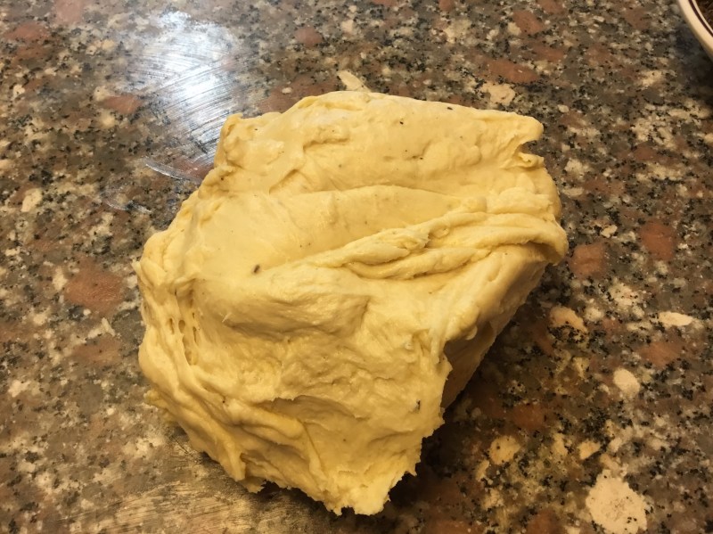 Lo tolgo dall’impastatrice e lo metto sul piano di lavoro leggermente imburrato