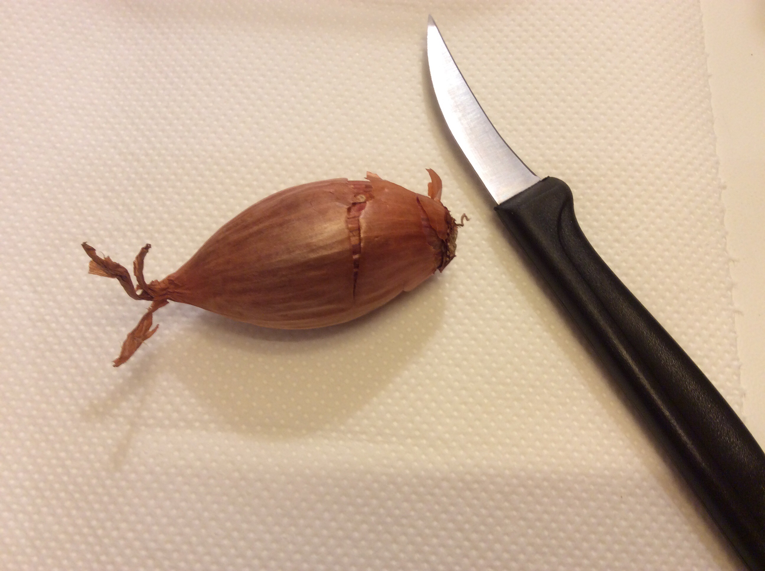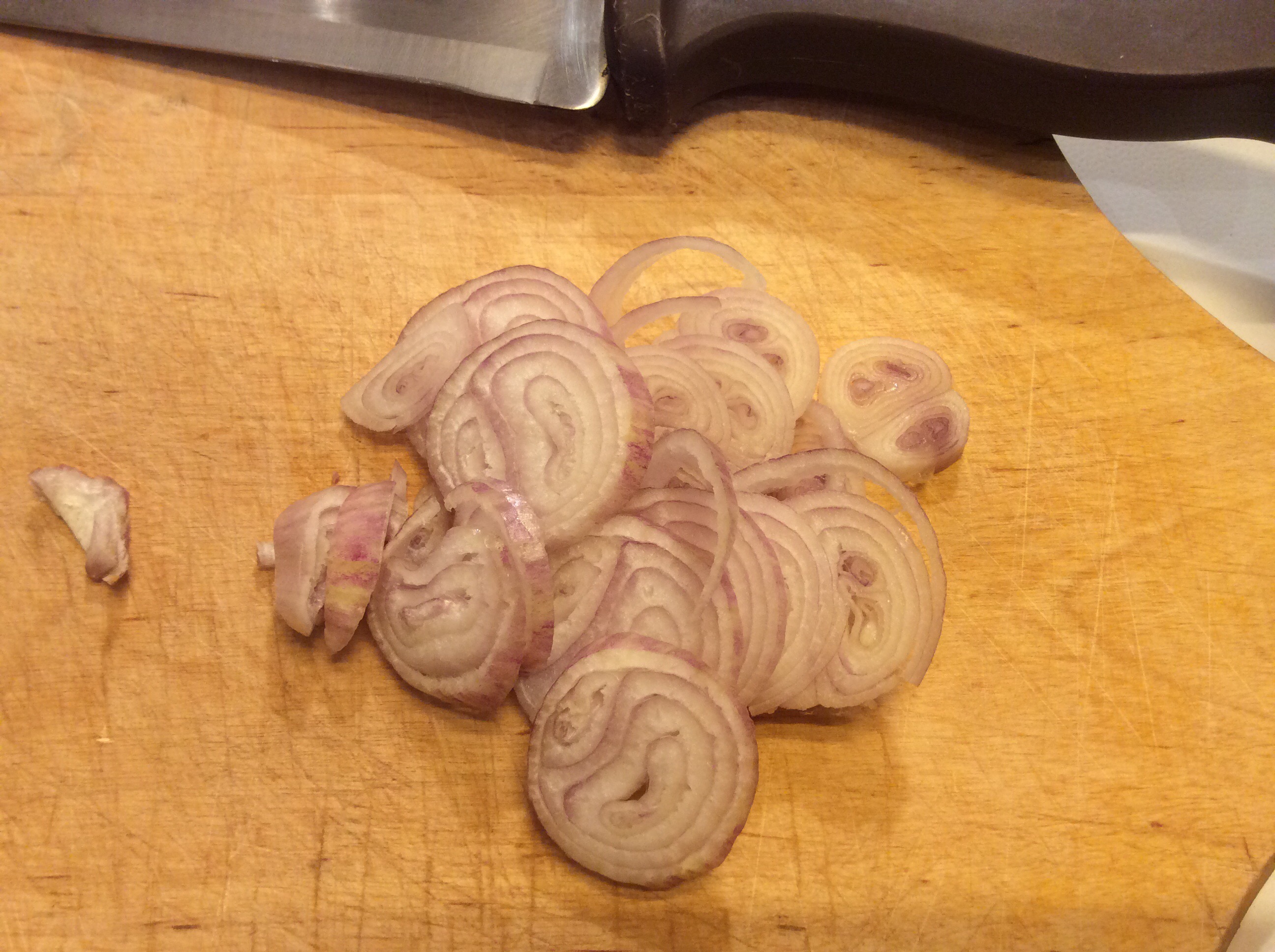 Inforno per 5 minuti a 200 gradi nel frattempo prendo uno scalogno