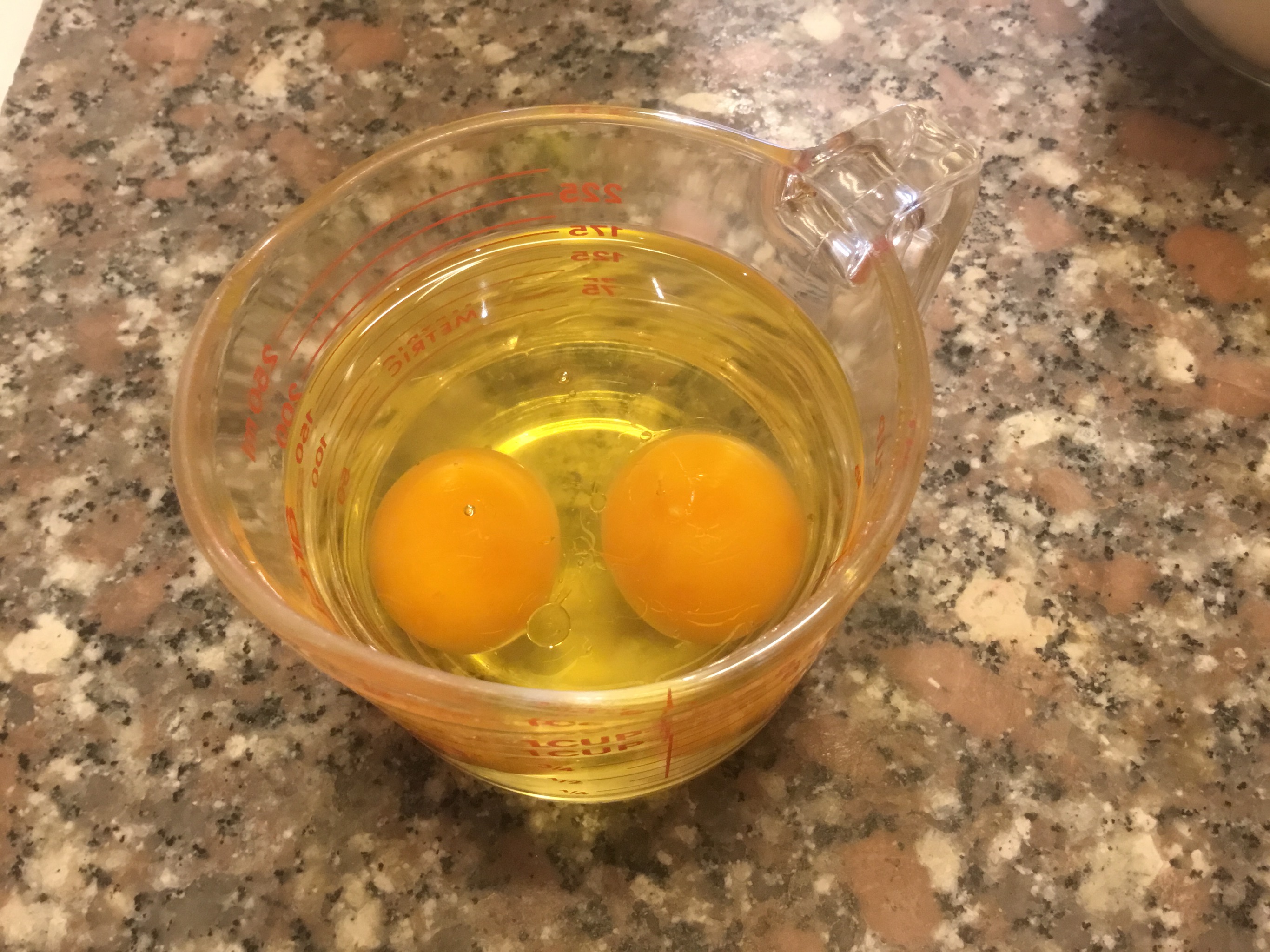 Rompo le uova e le unisco all’olio