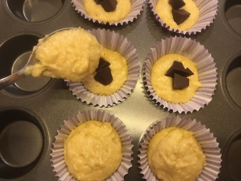 Finalmente dopo tanto lavoro un po’ di pausa e posso ritornare nella mia cucina a pasticciare oggi ho preparato questi muffin veloci morbidi dal cuore al cioccolato fondente