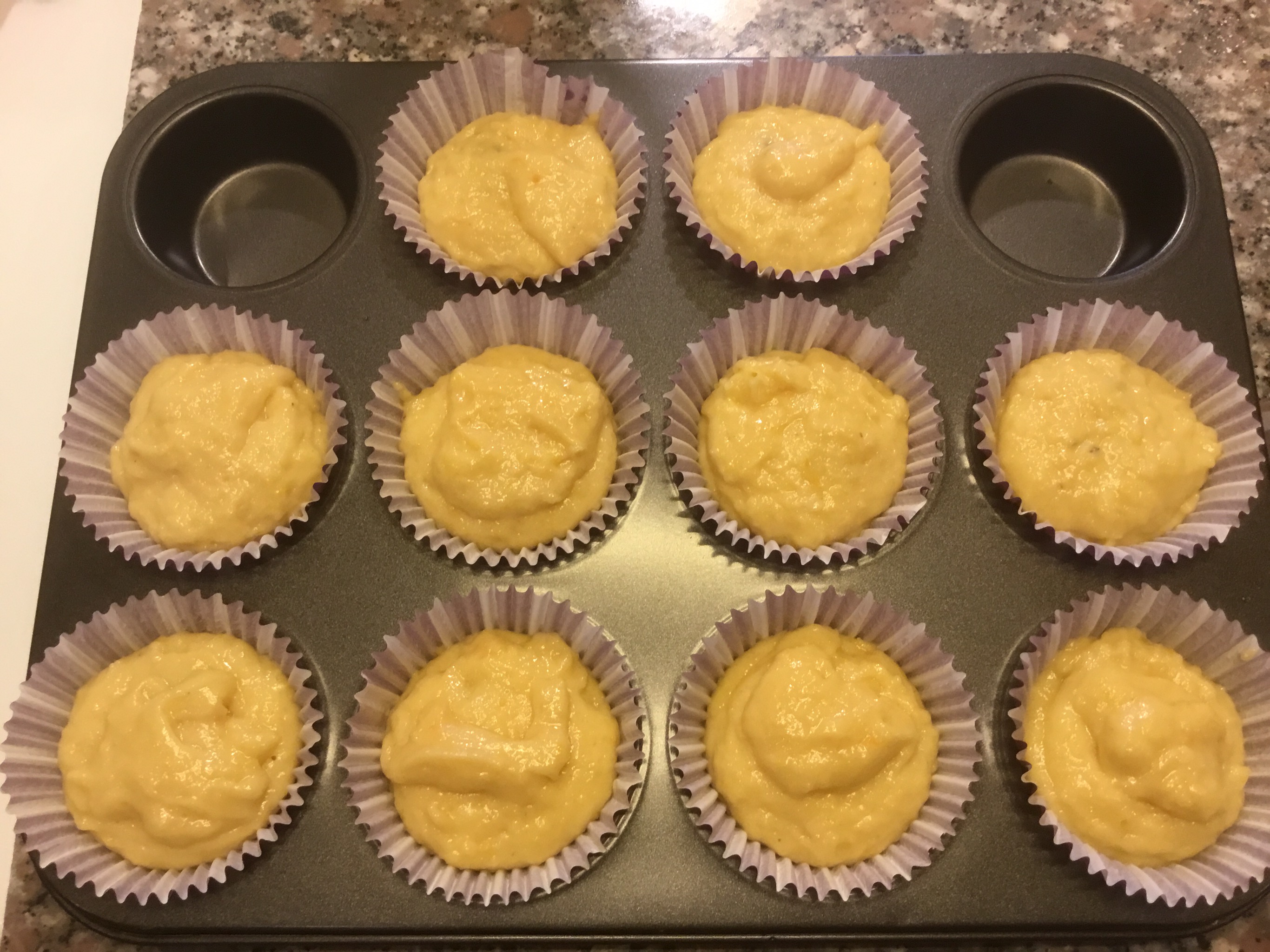 Dispongo i piroettino di carta nello stampo dei muffin e ne verso un cucchiaio