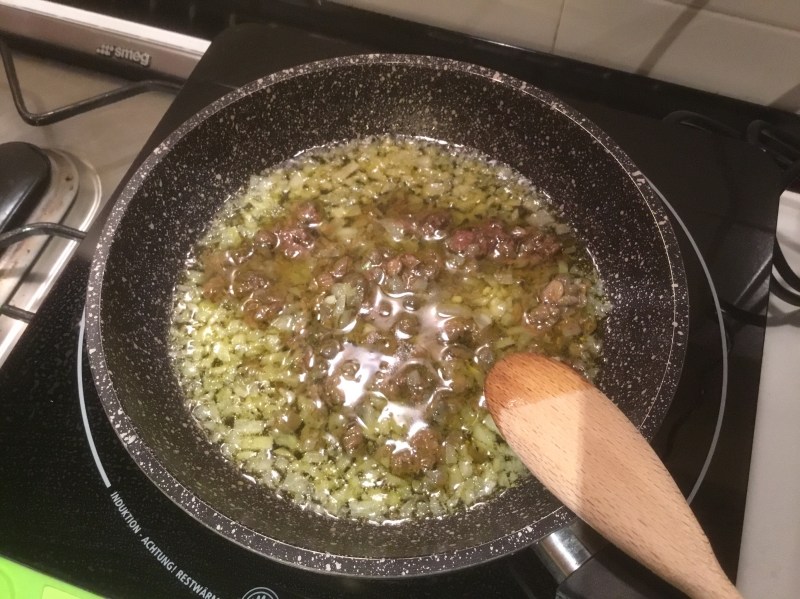 Le verso nella padella con la cipolla