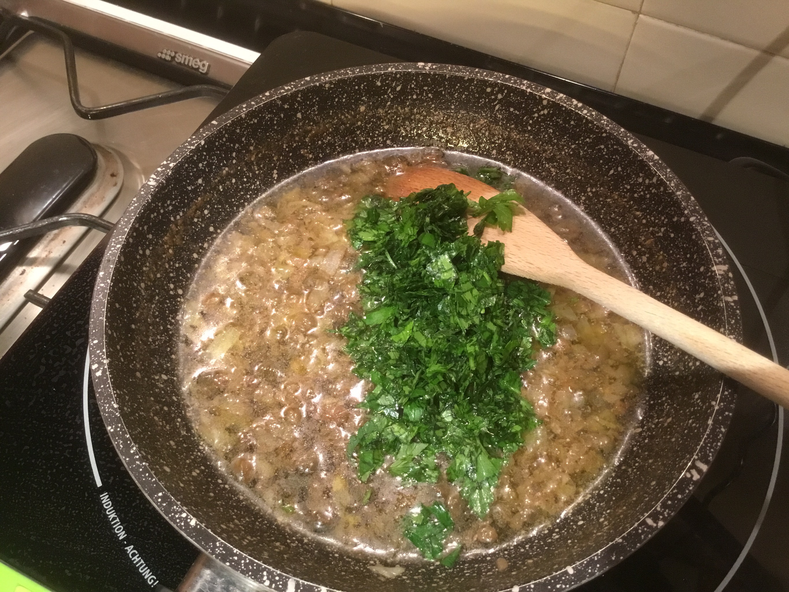 Le verso nella padella con la cipolla