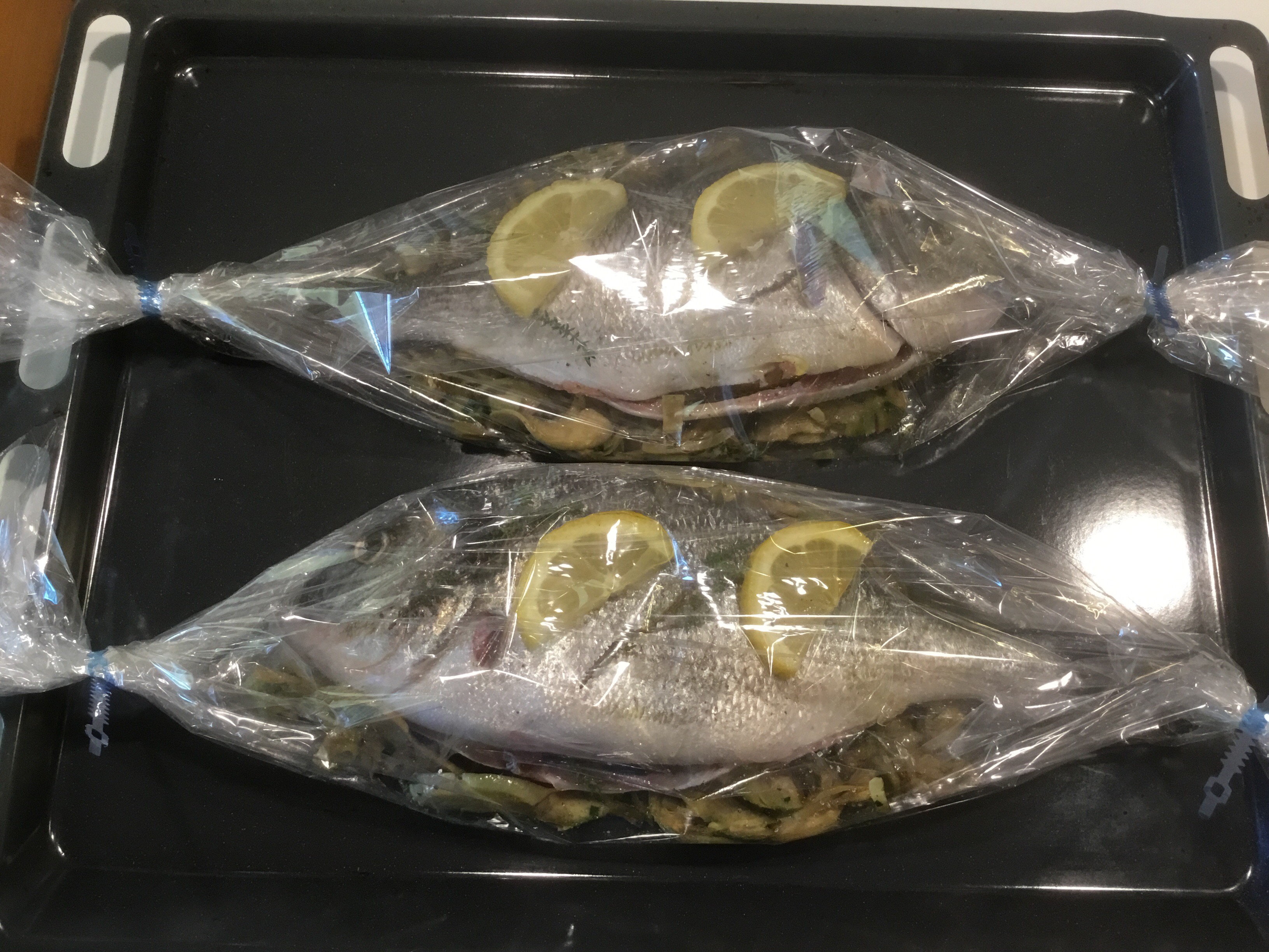 Inforno a 180 gradi per circa 25/30 gradi, la cottura dipenderà dalla dimensione delle vostre orate, servite l”orata direttamente nel cartoccio prima di servirla aggiungete un goccio di olio