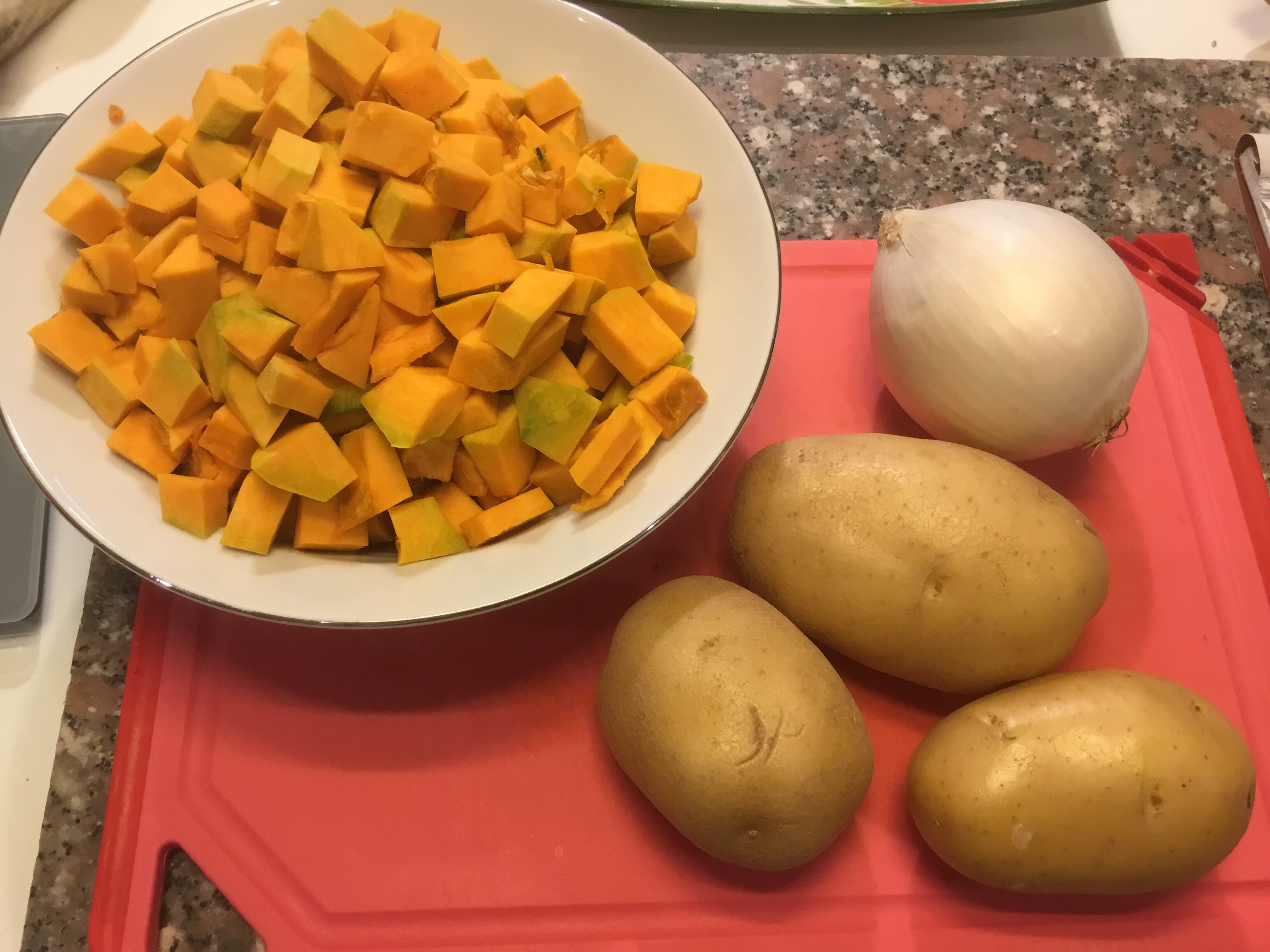 Sbuccio le patate e affetto la cipolla