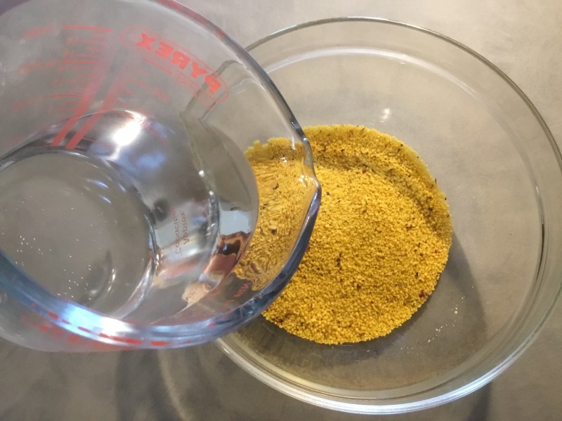 Con una forchetta sgrano in cous cous che si é ormai reidratato