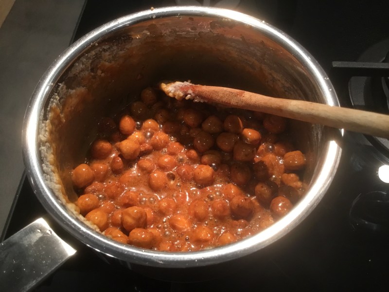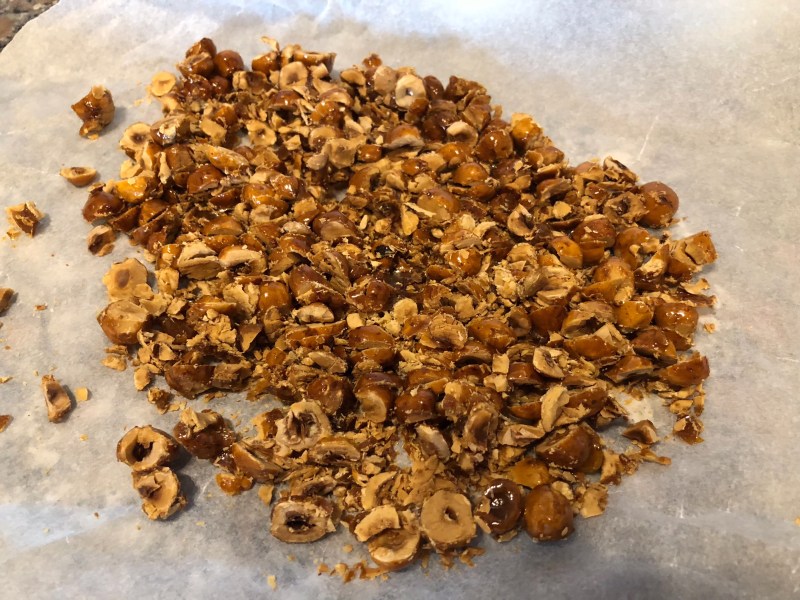 Continuo la cottura, le nocciole diventeranno pian piano lucide e dorate, attenzione a non bruciare lo zucchero