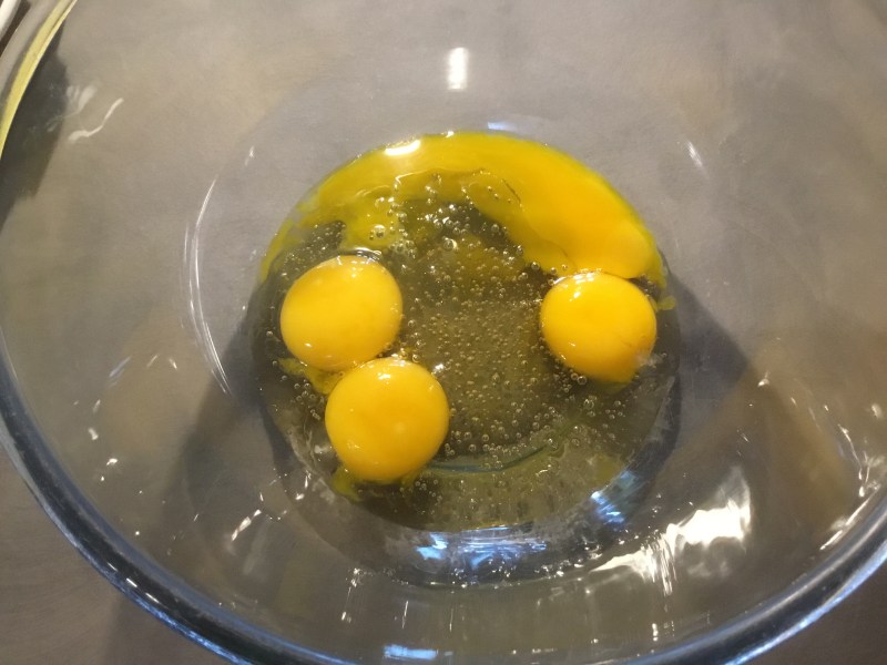 In una ciotola verso i tuorli con il miele, mi raccomando le uova a temperatura ambiente