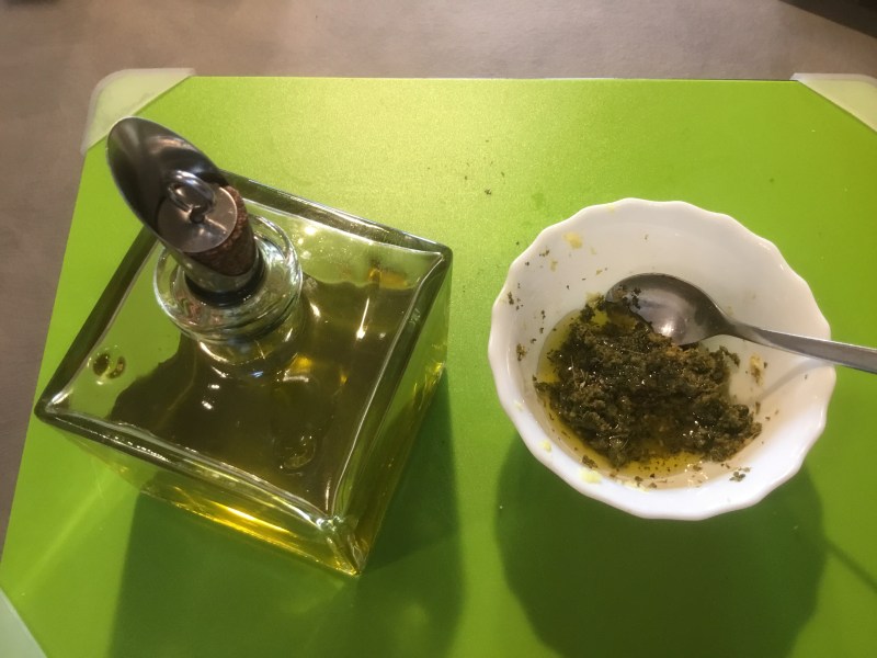 Verso sul trito un goccio di olio extravergine e mescolo ottenendo una crema
