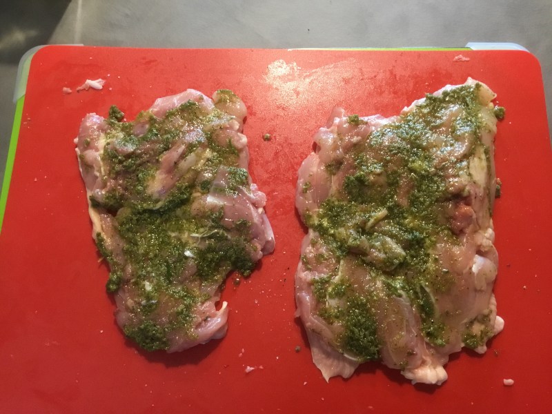 Spalmo il composto sul pollo in maniera uniforme