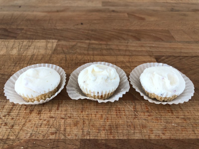 Le arrotolo formando delle roselline che dispongo al centro di ogni mini cheesecake