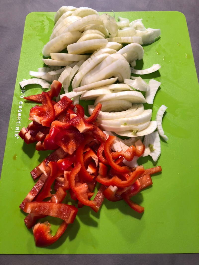 Quindi le cipolle e la melanzana alla quale ho tolto una parte di buccia