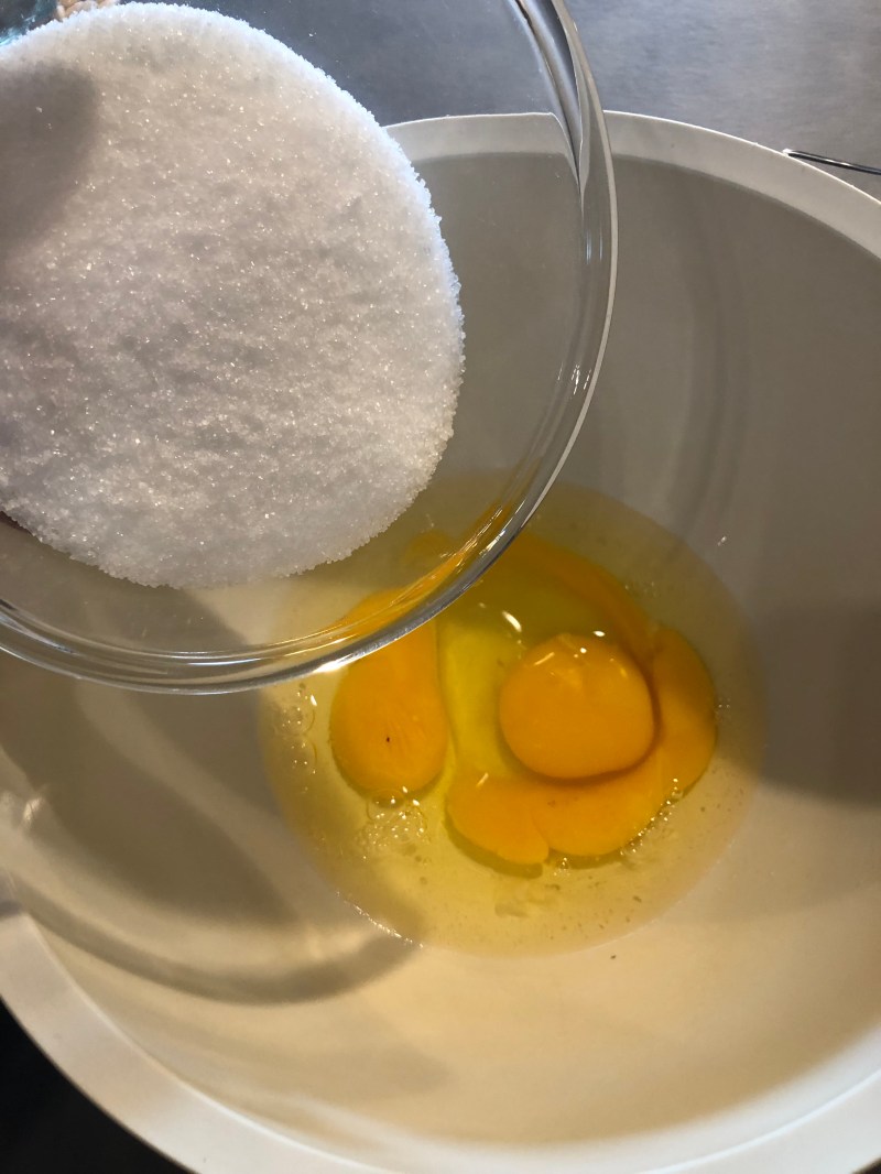 Intanto che si frulla in una ciotola rompo le uova con lo zucchero