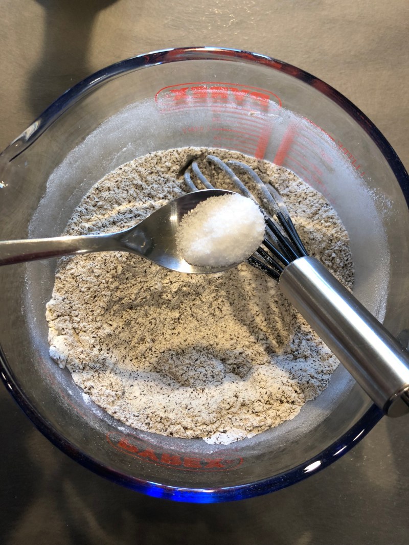In una ciotola mescolo le 2 farine e il sale