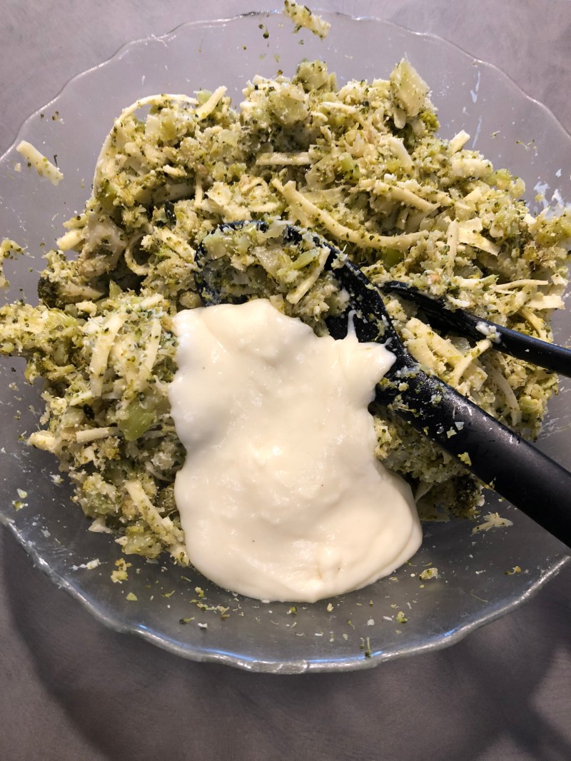 Prendo 4/5 cucchiai di besciamella e li metto nei broccoli e amalgamo bene