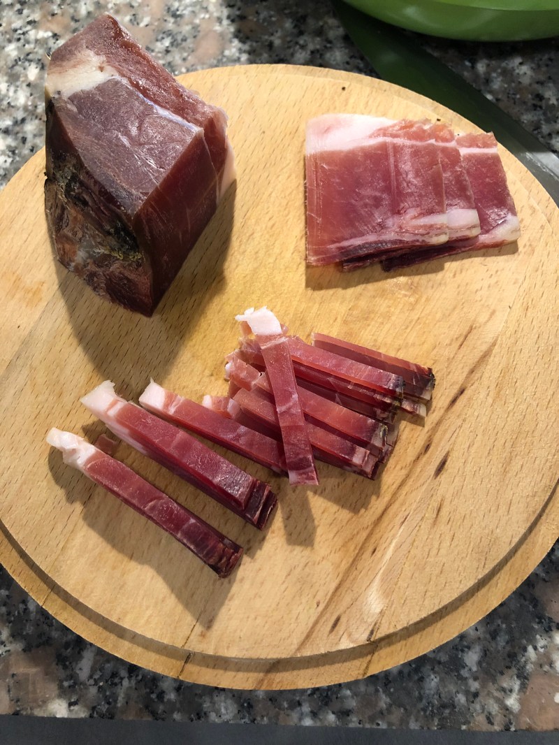 In una larga padella metto qualche cucchiaio di olio, lo scaldo e aggiungo lo speck