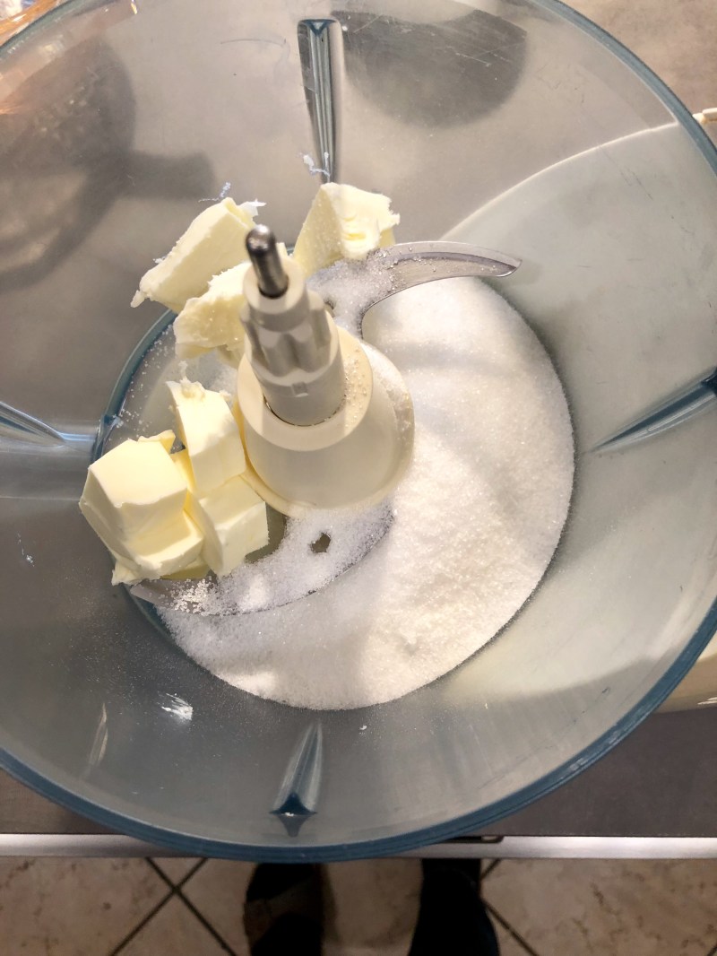 Preparo la frolla versando in un mixer lo zucchero e il burro freddo, potete farlo anche a mano