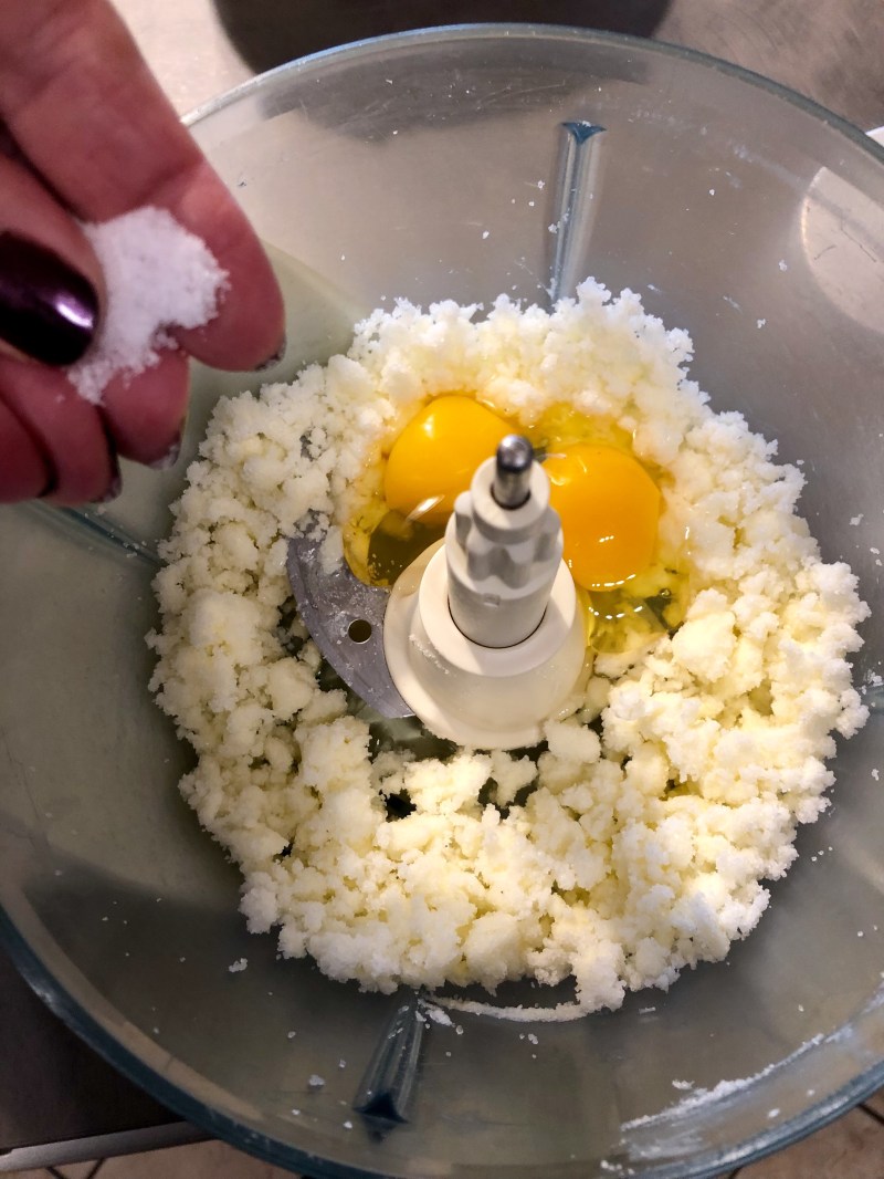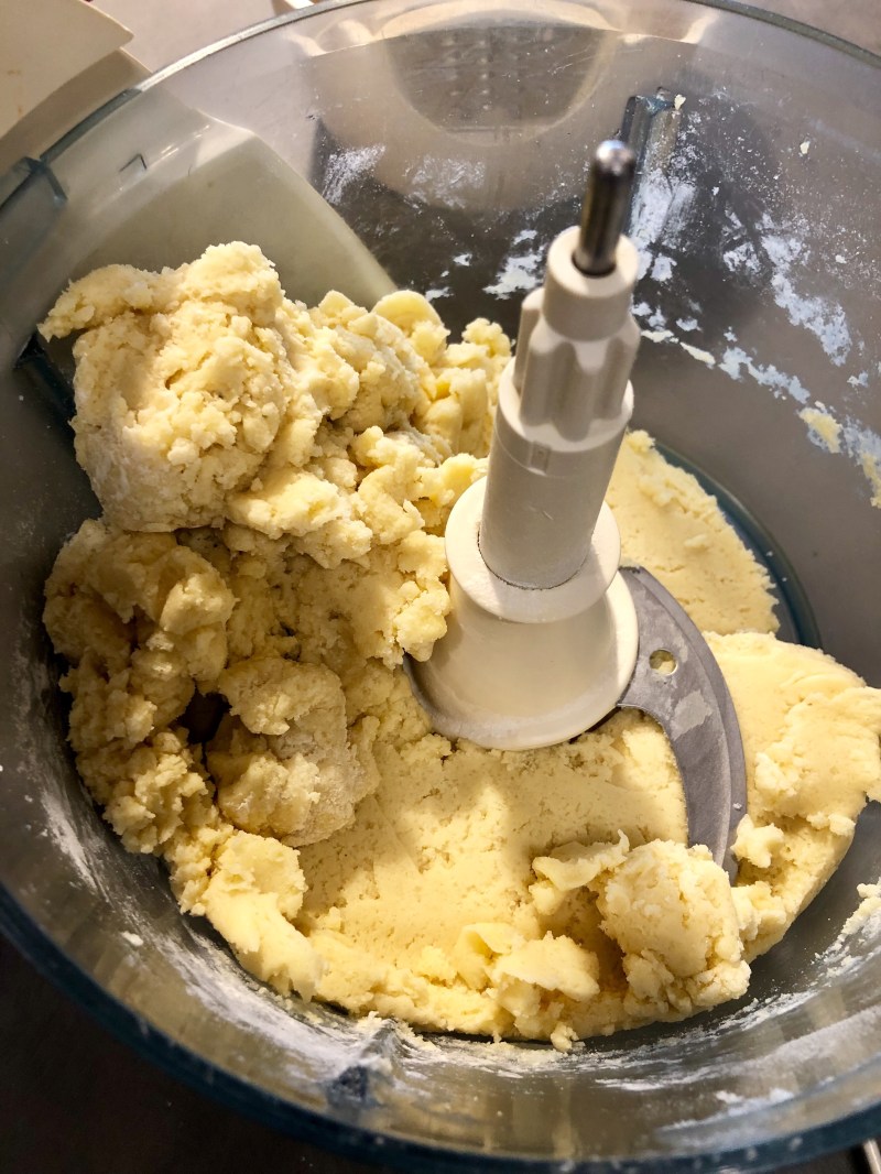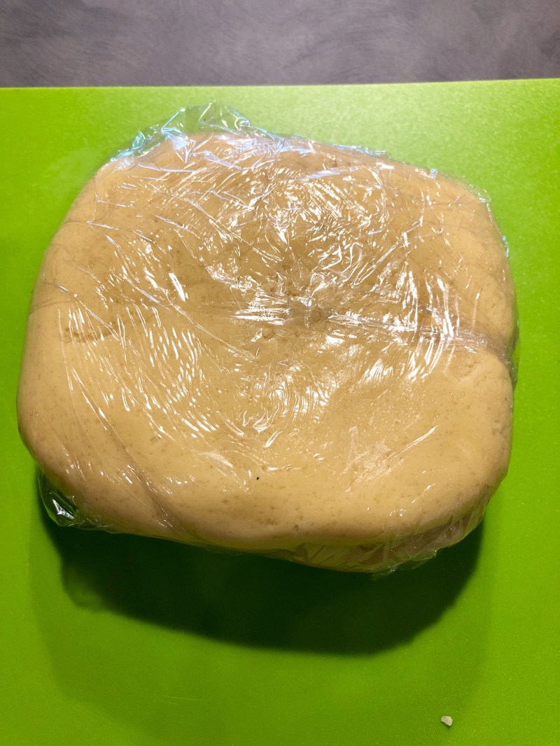 Tolgo dal mixer, formo una palla senza lavorare troppo e preparo un panetto che avvolgo nella pellicola e lascio riposare in frigorifero almeno mezz’ora