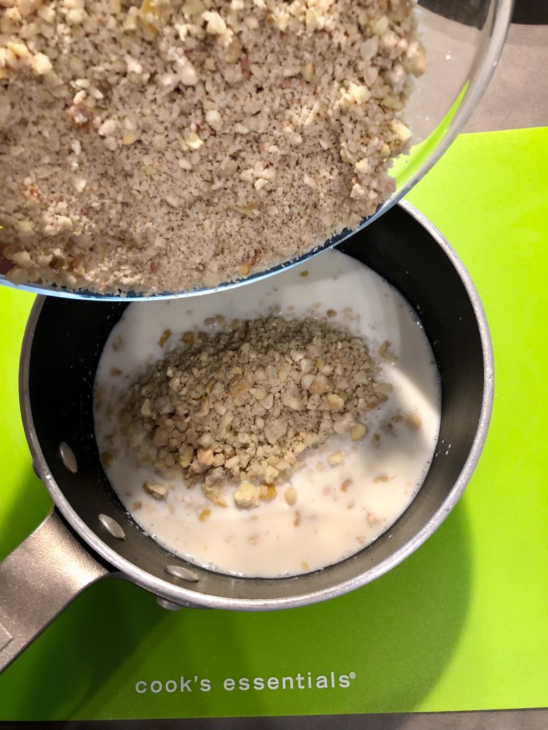 In un pentolino verso il latte con lo zucchero e le castagne, quando bolle tolgo dal fuoco