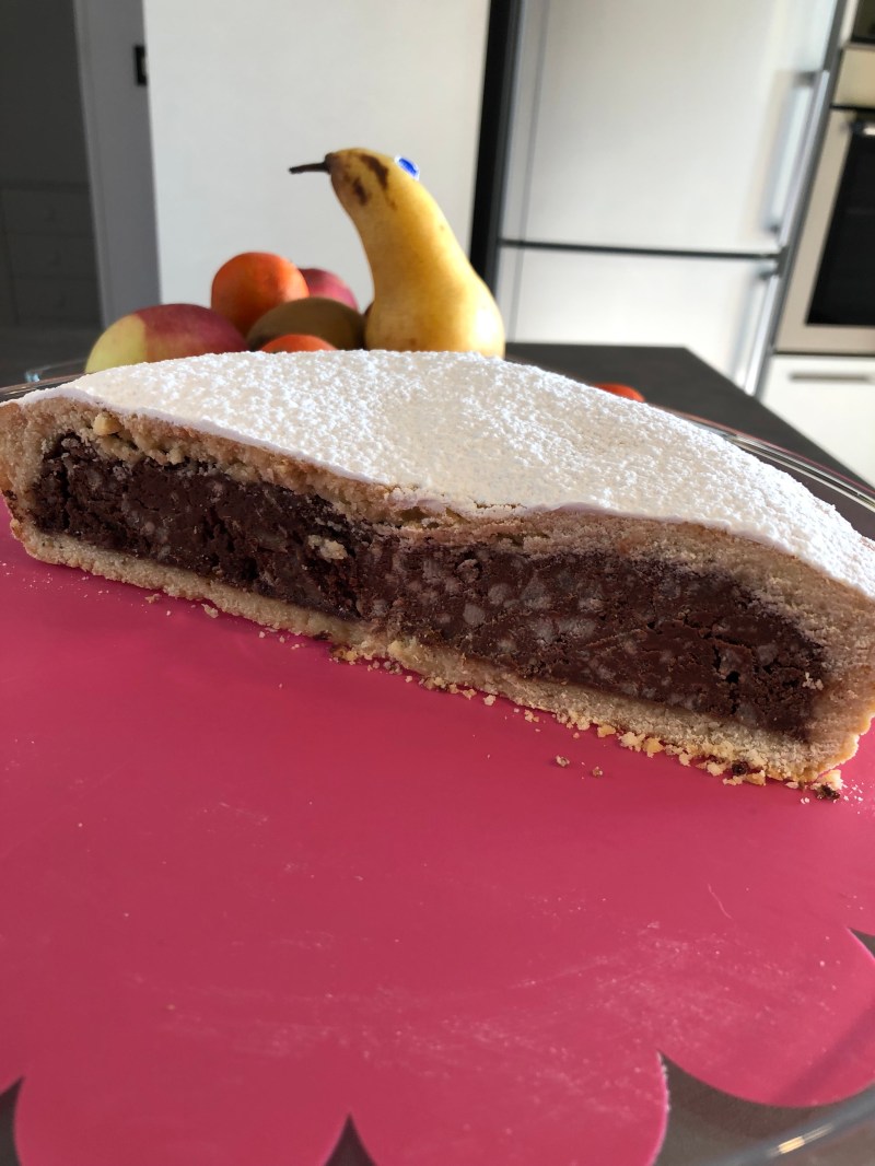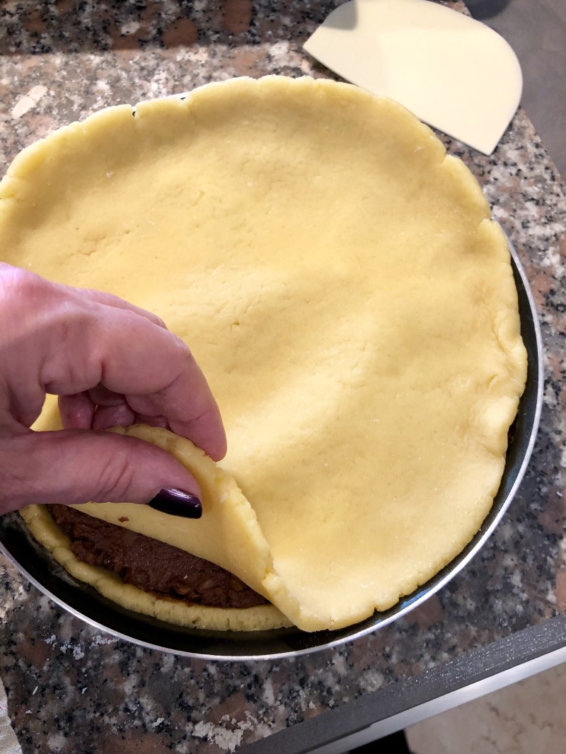 Stendo la rimanente frolla in un altro disco più piccolo e copro la torta