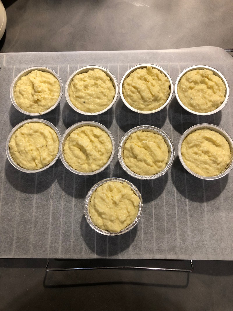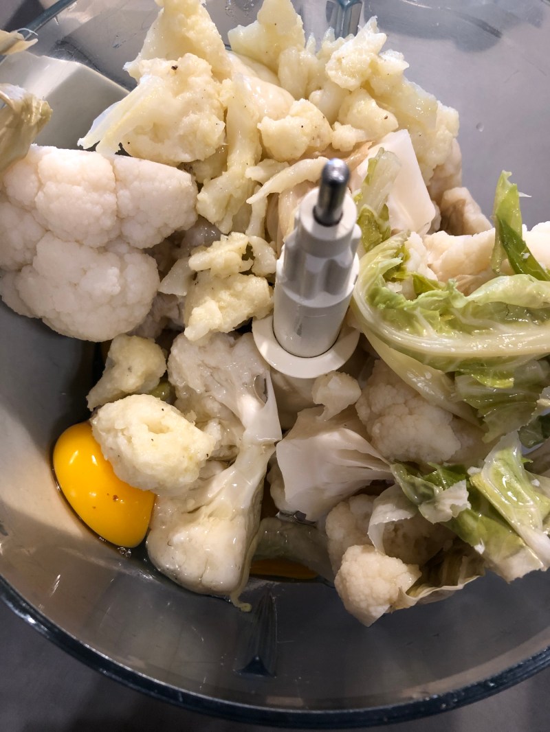 In un mixer verso i cavolfiori, aggiungo le uovaVerso il parmigianoAggiungo la pannaRegolo di sale Macino un po’ di pepeFrullo tutto per qualche minutoImburro e cospargo di pane grattugiato gli stampini di alluminioRiempio gli stampini con il compostoInforno a 180 gradi per 35 minuti