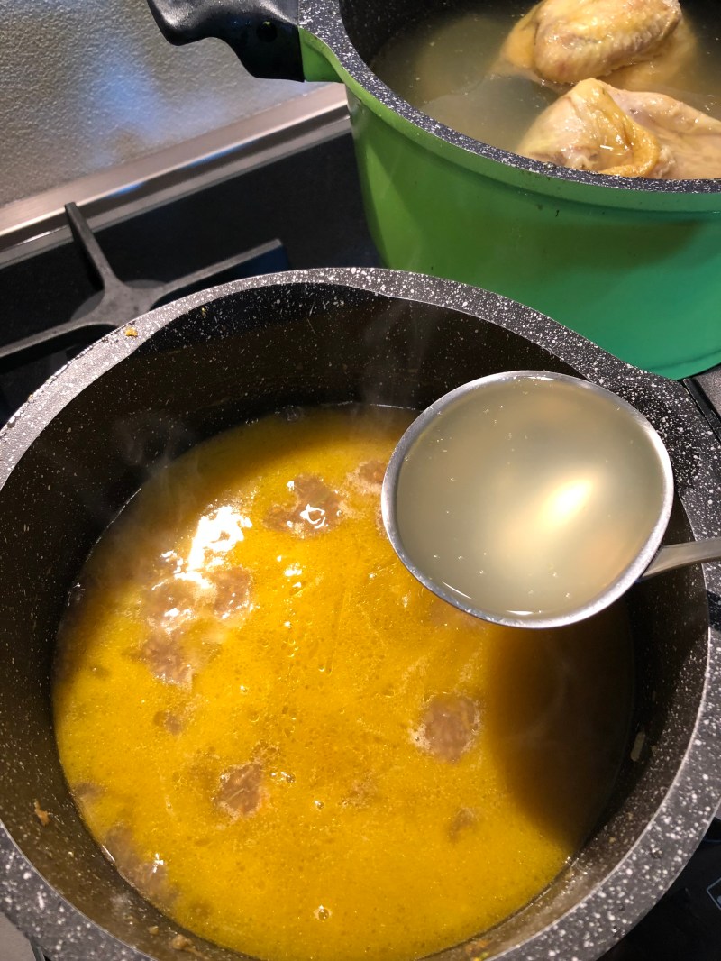 Innanzitutto preparo un brodo di pollo facendo bollire per circa un ora e mezzo mezzo pollo una carota il sedano e la cipolle, poco sale e 2 litri di acqua, in questa ricetta utilizzo solo il brodo, con la polpa ho preparato una gustosa insalata di pollo con peperoni Lombardi sott’aceto e Leerdammer, oppure sul blog nella sezione secondi piatti di pollo, trovate altre ricette nelle quali si può utilizzare sia gli avanzi di pollo lesso che arrosto