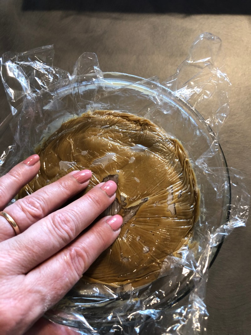 Tolgo la crema dal pentolino e la verso in una ciotola, la ricopro con una pellicola a contatto e quando é fredda la ripongo in frigorifero