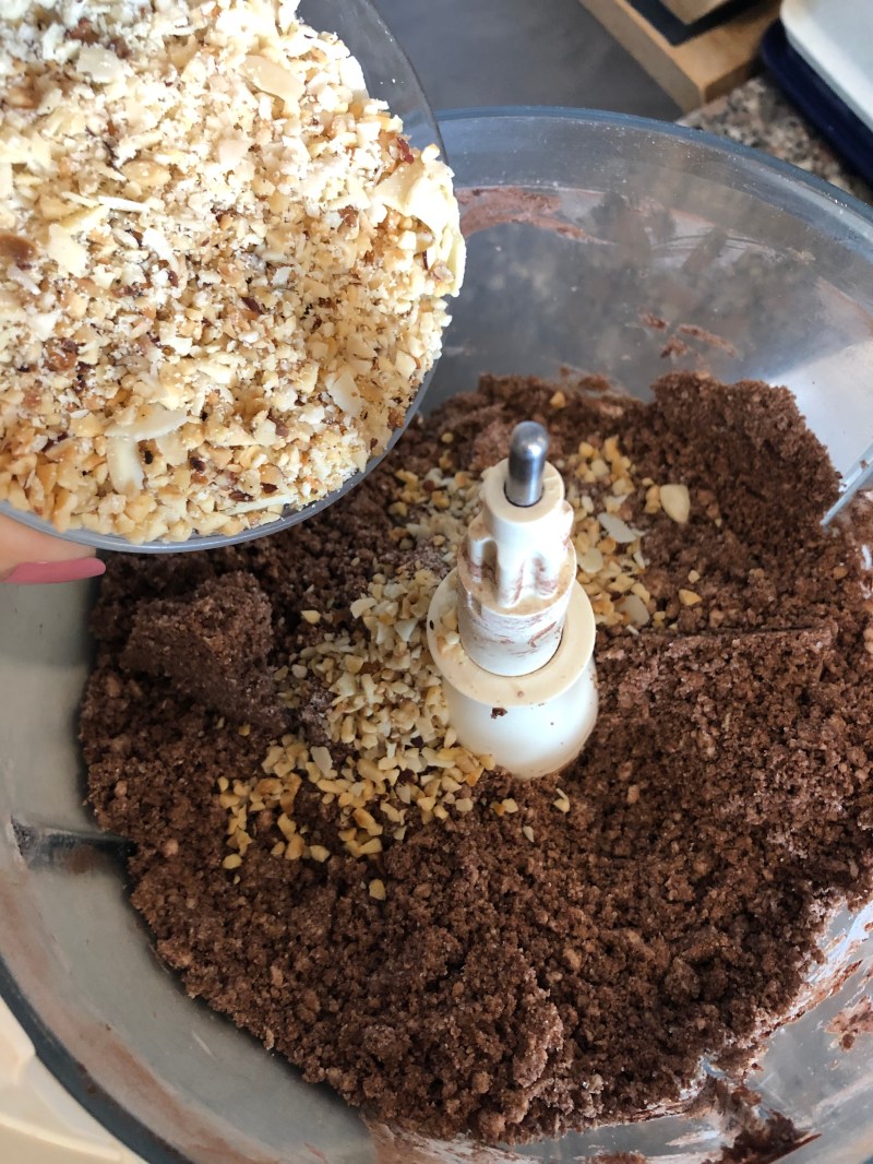 Aziono il mixer per pochi minuti poi aggiungo le nocciole tritate io non le ho tritate molto fini perché mi piace sentirle nella masticazione