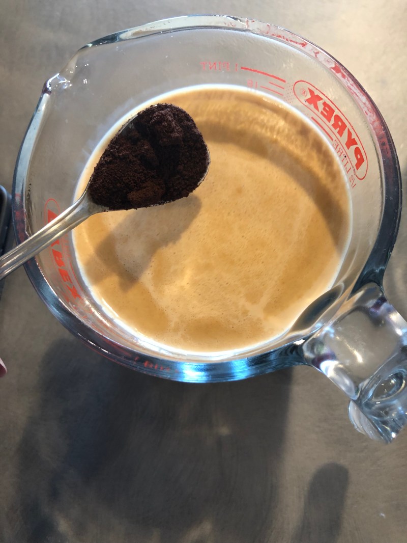 1 CUCCHIAINO ABBONDANTE DI CAFFÈ SOLUBILE (se non l”avete aumentate a 100 ml il caffè ristretto)