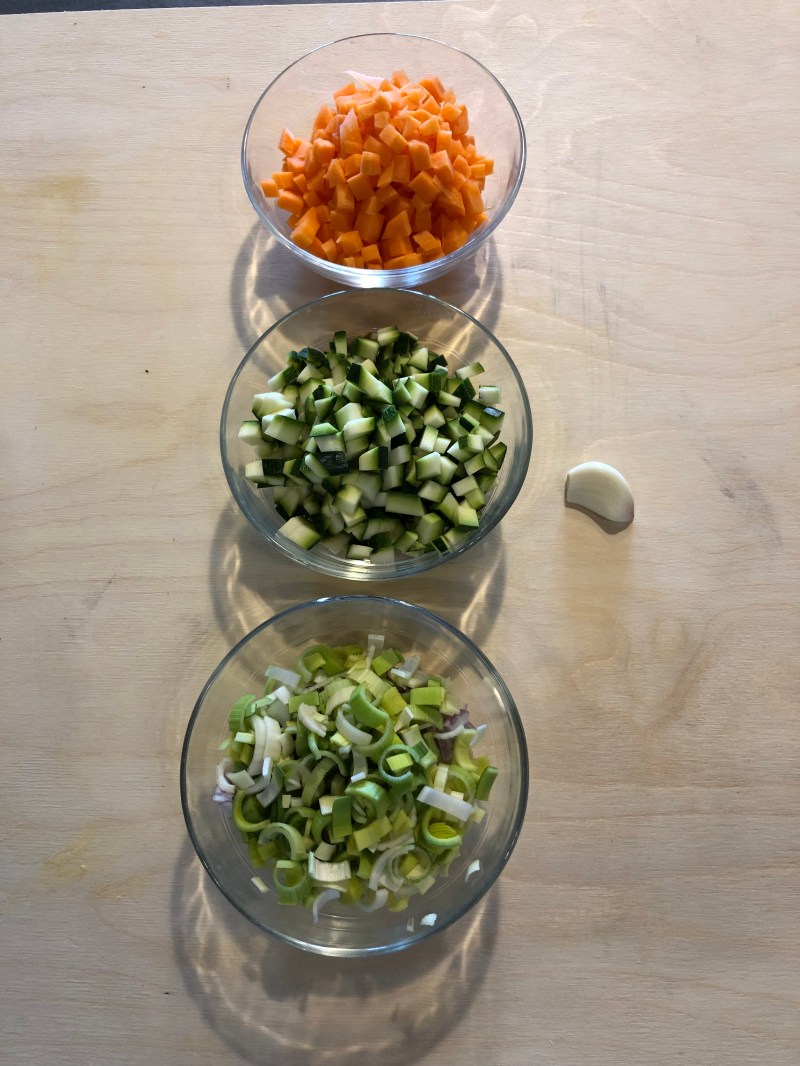 Lavo e pulisco le verdure e le taglio a piccoli cubetti