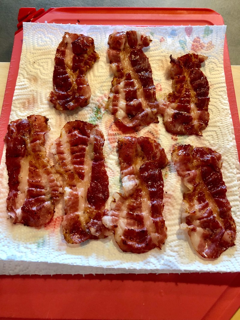 Scaldo una padella e dispongo le fettine di pancetta lasciandole colorire