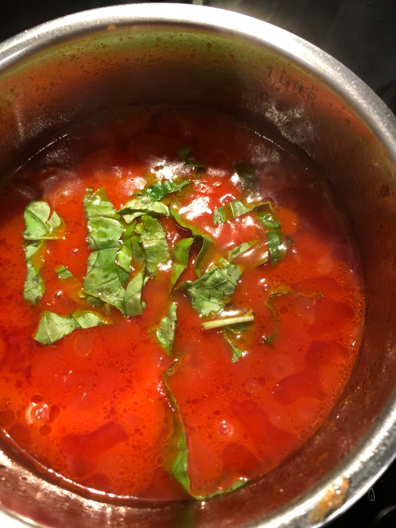 Lascio cuocere per una decina di minuti poi aggiungo alcune foglie di basilico spezzettate e lascio riposare