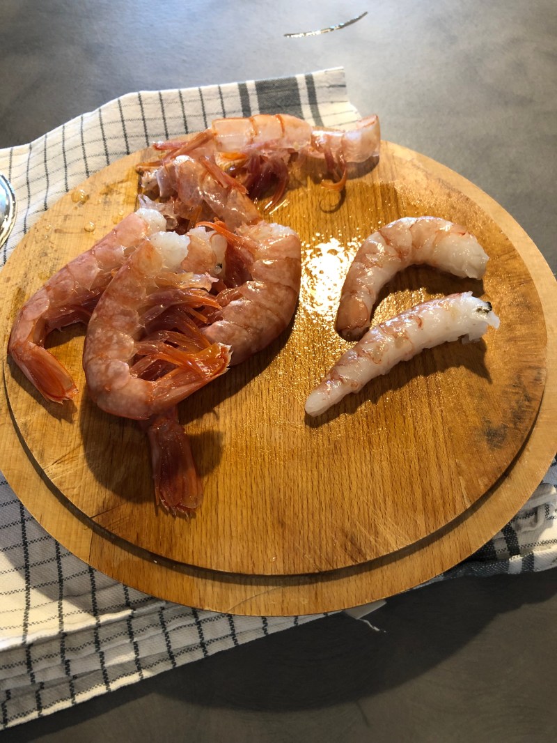 Aggiungo 6 gamberi ogni porzione, una macinata di pepe e un filo di olio extravergine e con alcuni ciuffetti di maionese aromatizzata