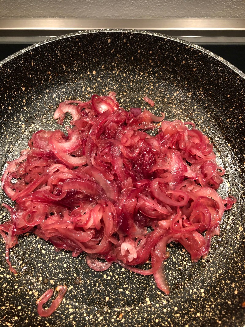 Dispongo un mucchietto di cipolle caramellate