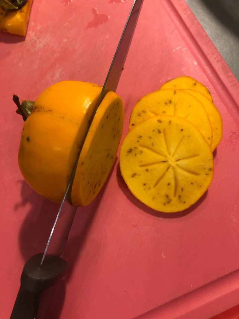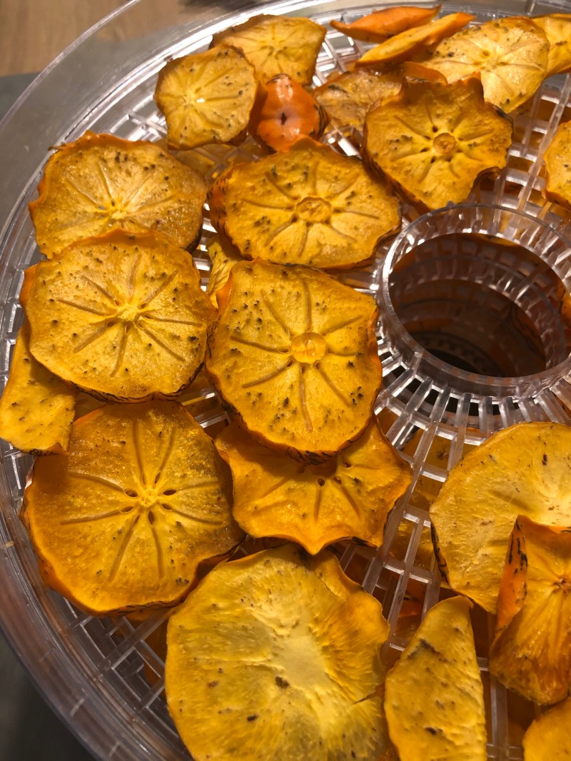 Scelgo dei cachi piuttosto acerbi sodi, io dispongo di un essiccatore casalingo, li lavo accuratamente e asciugo quindi con un coltello ben affilato li affetto dello spessore di circa 2/3 mm