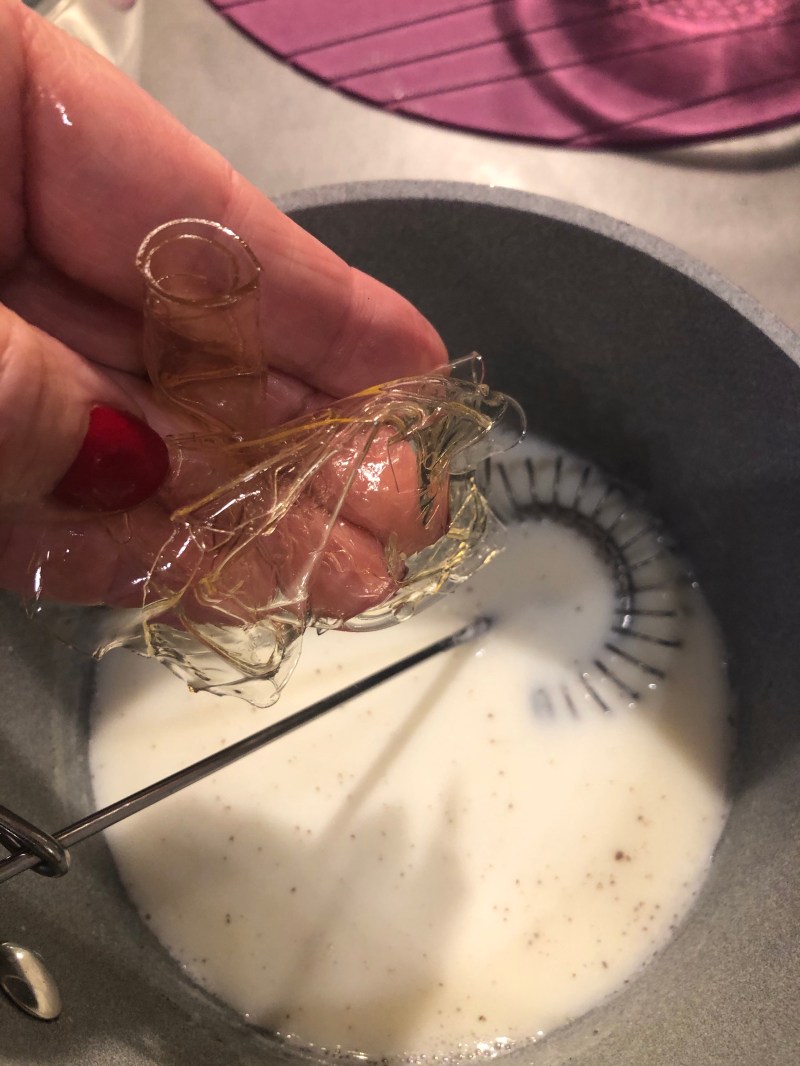 Strizzo la gelatina e la verso nel pentolino con il latte e la sciolgo bene
