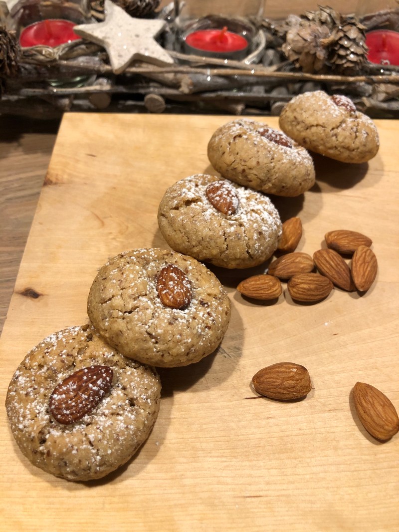Inforno a 180 gradi per 15 minuti devono diventare leggermente dorati, spolverizzo con poco zucchero a velo