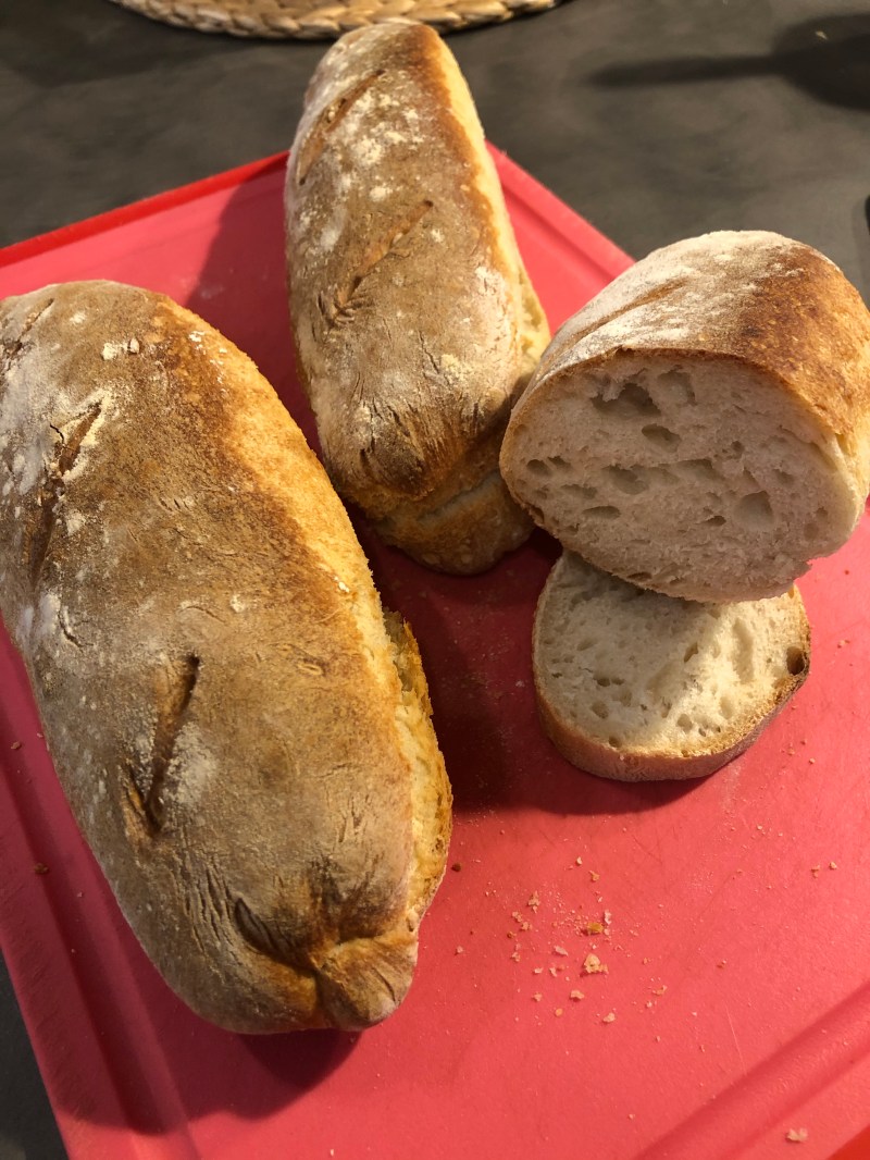 1 CUCCHIAINO DI ZUCCHEROVerso l’acqua e il lievito nel cestello della planetaria oppure in una ciotola se impastate a mano e lo sciolgoAggiungo farina e zuccheroImpasto per alcuni minuti poi aggiungo il sale,lavoro per una decina di minuti finché l’impasto si stacca dalle paretiL’impasto deve essere liscio, lo verso sulla spianatoia, lo lavoro qualche minutoFormo una palla e la trasferisco in una grande ciotola leggermente infarinata e pratico un taglio a croce copro con un coperchio o con la pellicola e lascio lievitare per circa 2 ore in forno spento con la luce accesaTrascorse le due ore l’impasto é raddoppiatoLo trasferisco sulla spianatoia e divido l”impasto in 3 parti ugualiPrendo un pezzo e lo appiattiscoPiego il lato sinistro verso il centroPoi il lato destro Piego nuovamente a metà e sigillo bene tenendo la chiusura verso il basso dando la forma di un salameAppoggio i filoncini sulla placca del forno o in quella microforata apposita per il panePratico delle incisioni con un coltello affilato e li infarino leggermente, copro con un canovaccio e lascio lievitare ancora per 30 minuti, intanto scaldo il forno a 230 gradi mettendo sul fondo un pentolino pieno di acqua che creerà il vapore in cottura, trascorso il tempo inforno per circa 20/25 minuti, i filoncini dovranno risultare doratiLi lascio raffreddare, se non li consumate subito o se avanzano io li conservo in un sacchetto per alimenti e all’occorrenza li affetto e riscaldoTiepidi con la nutella sono fantastici`