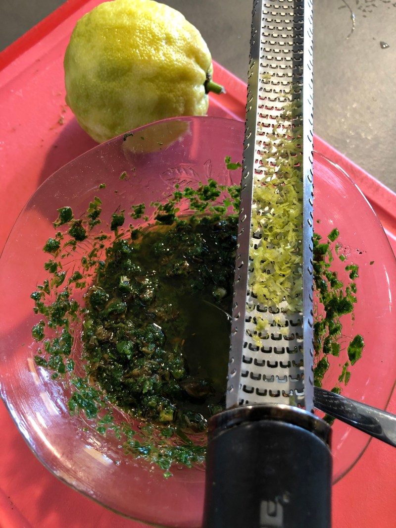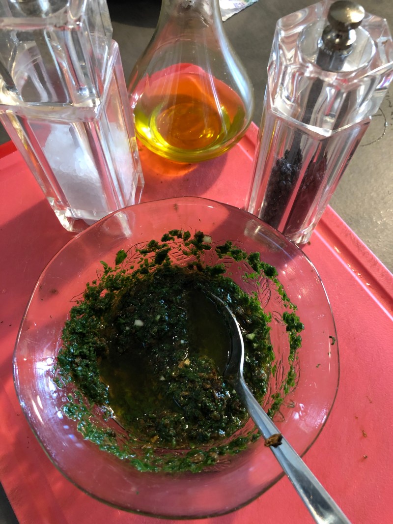 Li aggiungo in una ciotolina con il prezzemolo tritato, aggiungo sale e pepe e abbondante olio extravergine