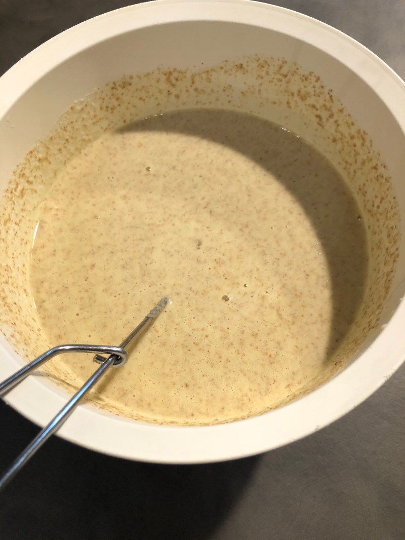 In una ciotola verso la farina integrale e aggiungo il latte mescolando con una frusta